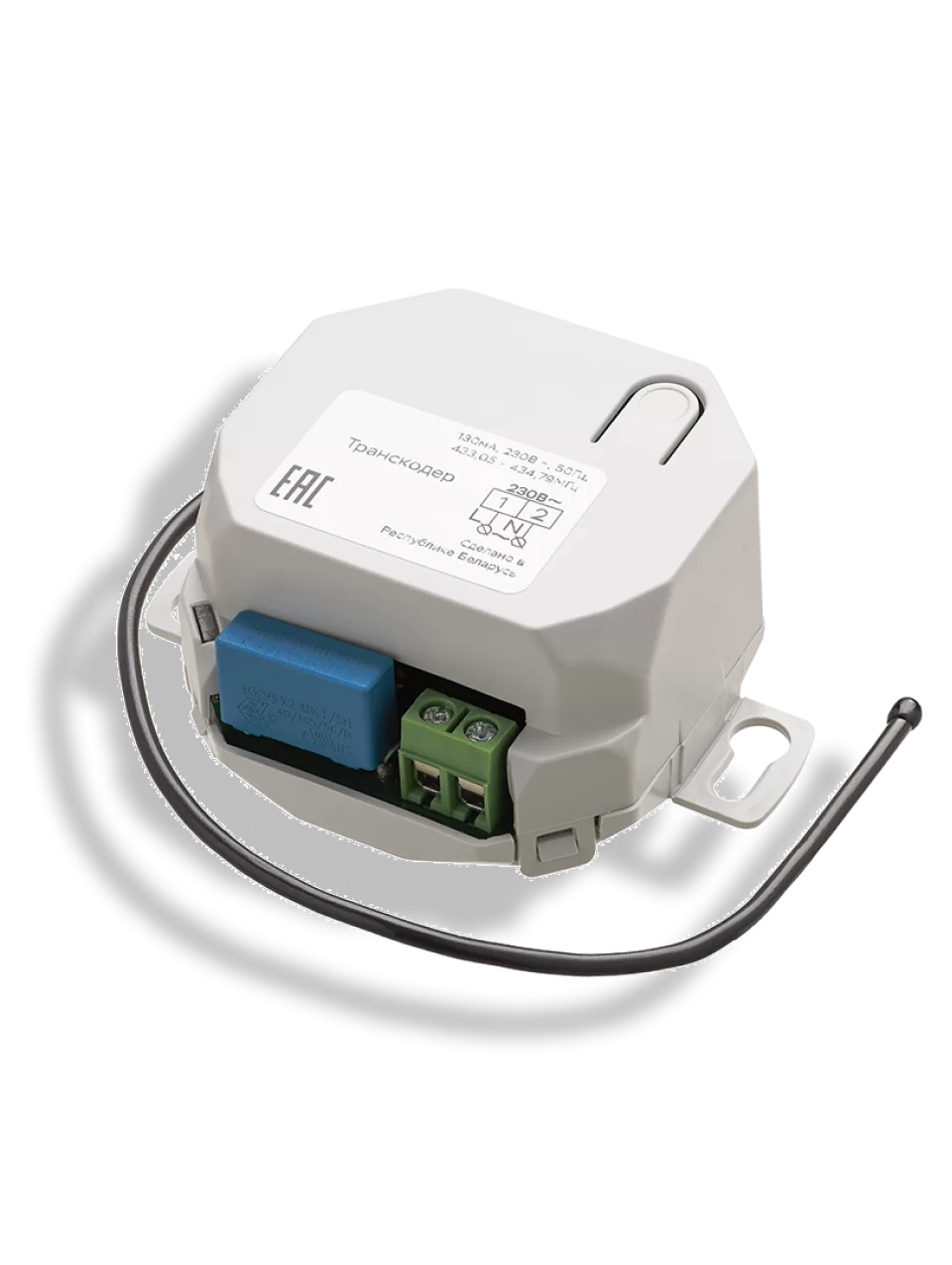 Транскодер выполнен разработчиками во встраиваемом пластмассовом корпусе с габаритными размерами 93х93х55мм, предусмотрена возможность установки устройства в труднодоступные места. Степень защиты корпуса – IP65